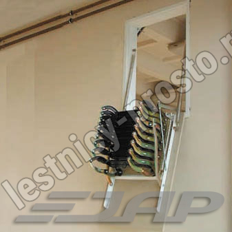 На ступенях антискользящие насечки. Люк выполнен из ДСП древесного цвета. Металлический стержень для открывания лестницы в комплекте.