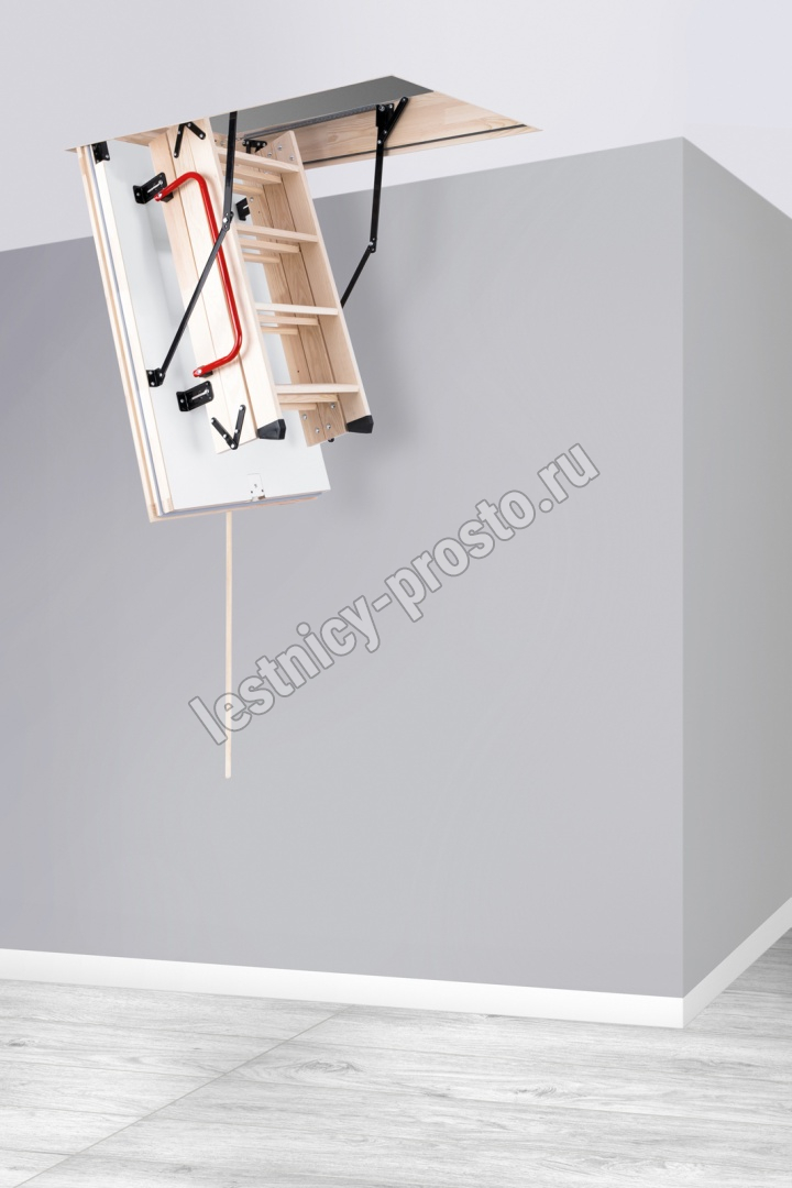 Максимально утеплённая чердачная лестница из массива сосны. Складная, трёхсекционная. Лестница идеально подходит для организации прохода на холодный чердак.