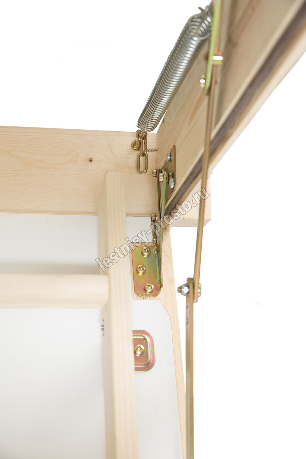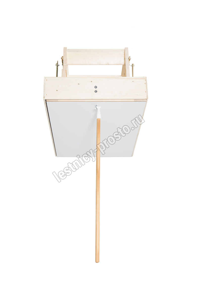 На ступенях лестницы антискользящие насечки. Люк с двух сторон облицован ДСП белого цвета.