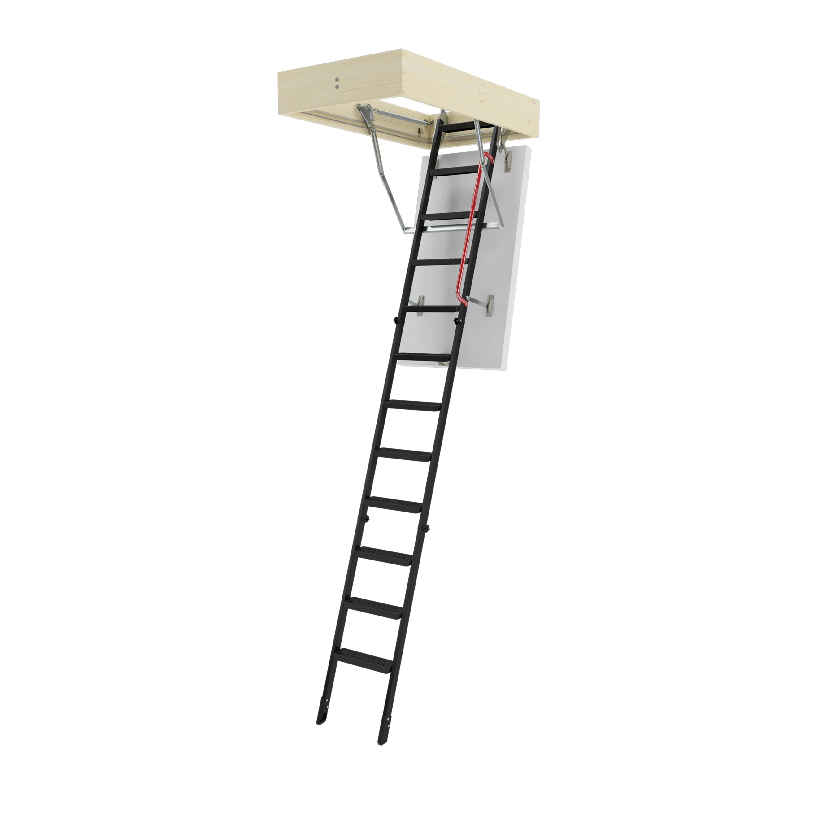 Благодаря «ножничной» системе складывания в сложенном виде лестница LSF очень компактна, и соответственно имеет небольшой размер крышки люка. Специальный механизм регулировки угла открывания крышки люка позволяет подогнать высоту лестницы под высоту потолка.