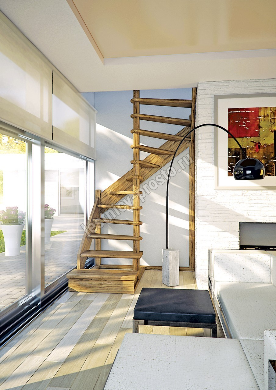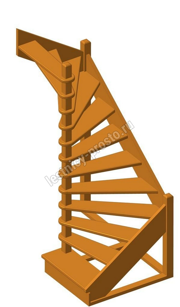 Деревянная межэтажная лестница ЛЕС-01 2720-2920 проем 1630-1120, Сосна