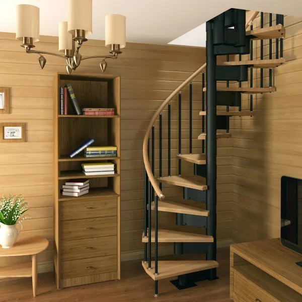 Базовый комплект включает в себя деревянные элементы лестницы без какого-либо покрытия.