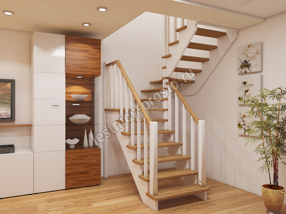 Базовый комплект включает в себя деревянные элементы лестницы и ограждения без какого-либо покрытия.