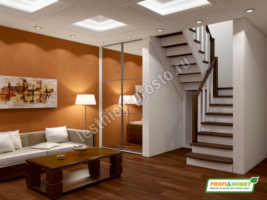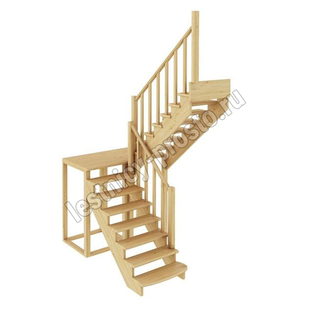 Ступени и поручень лестницы выполнены из дуба, остальные элементы из сосны. Возможно изготовление данной модели полностью из дуба.