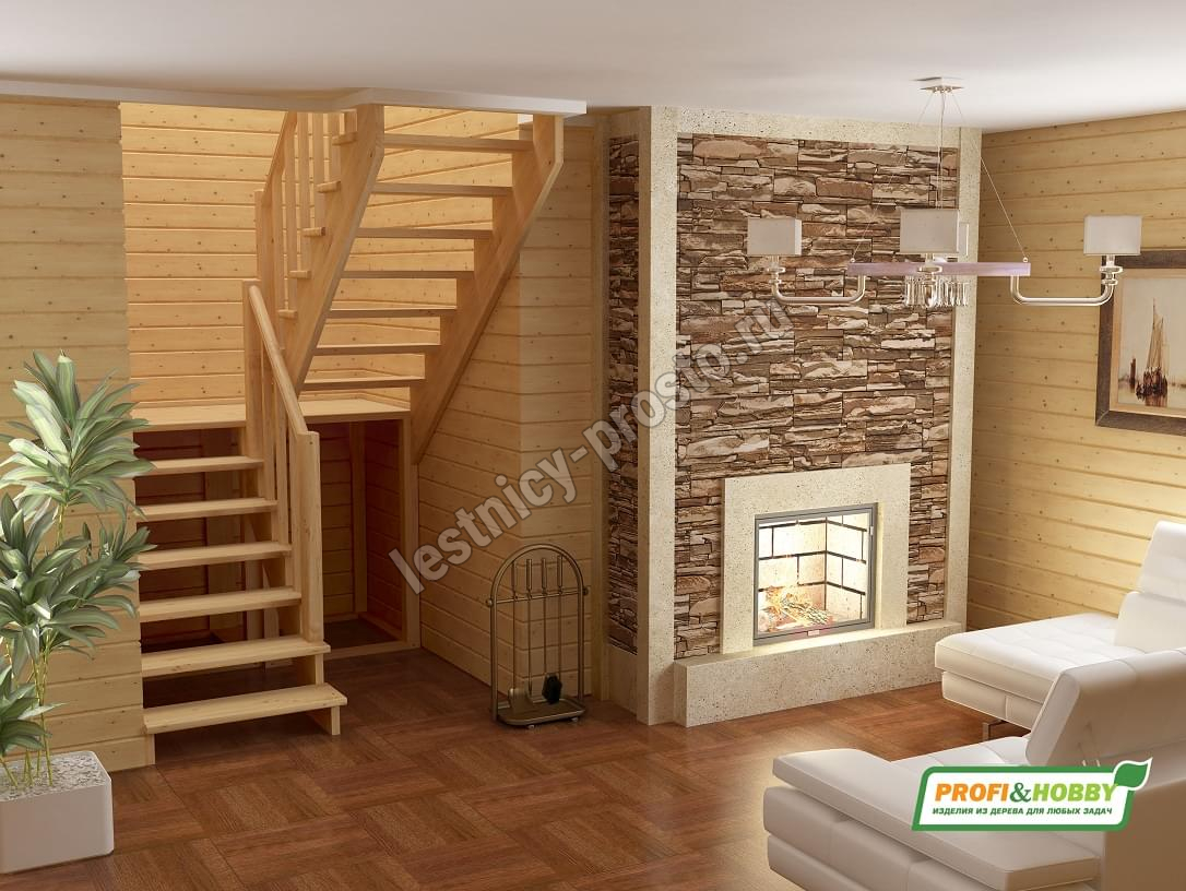 Ступени и поручень лестницы изготовлены из дуба, остальные элементы из сосны.