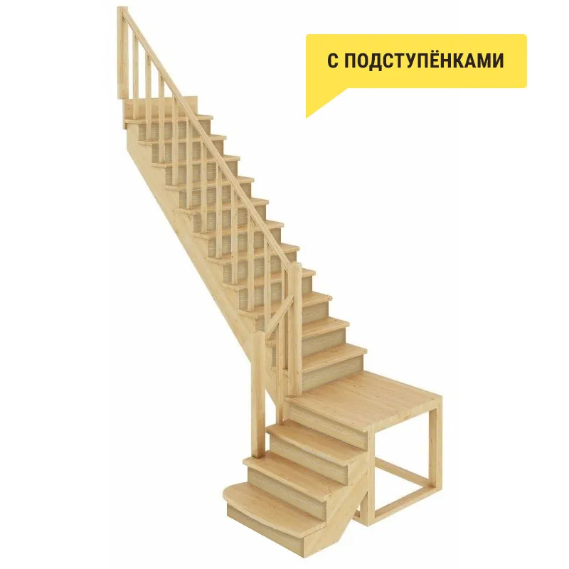 Обратите внимание! Эта модель изготовлена из сосны эконом-класса, что отражается на внешнем виде древесины заметными синими/серыми вкраплениями, эти особенности не влияют на механические свойства лестницы, но могут быть заметны при покраски лестницы в светлые тона!