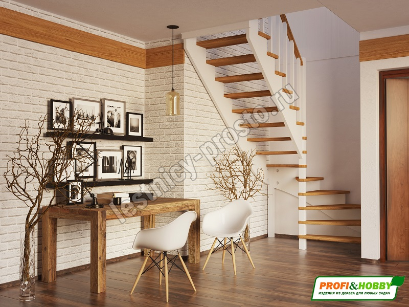 Базовый комплект включает в себя деревянные элементы лестницы и ограждения без какого-либо покрытия.