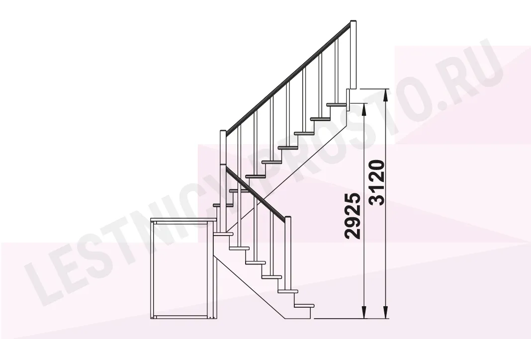 Базовый комплект включает в себя деревянные элементы лестницы и ограждения без какого-либо покрытия.