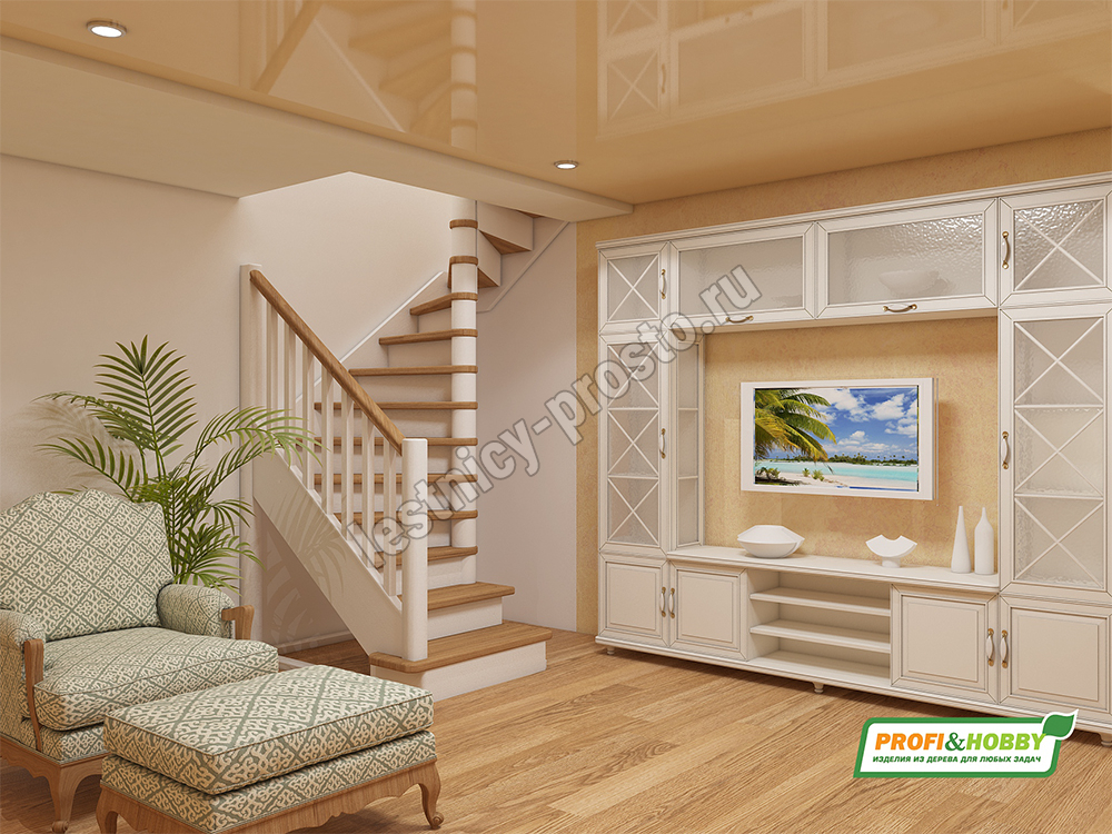 В производстве лестницы ЛС-05м под покраску используется сосна с небольшими изменениями цвета, что практически не влияет на ее механические свойства и почти незаметно при покраске в темные цвета. Базовый комплект включает в себя деревянные элементы лестницы и ограждения без какого-либо покрытия.