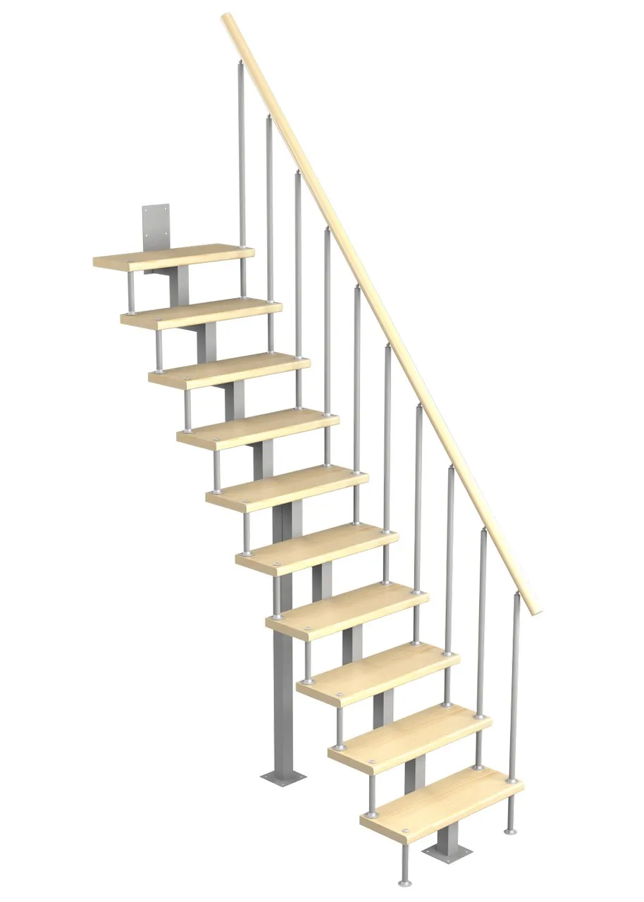 Базовый комплект включает в себя деревянные элементы лестницы без какого-либо покрытия.