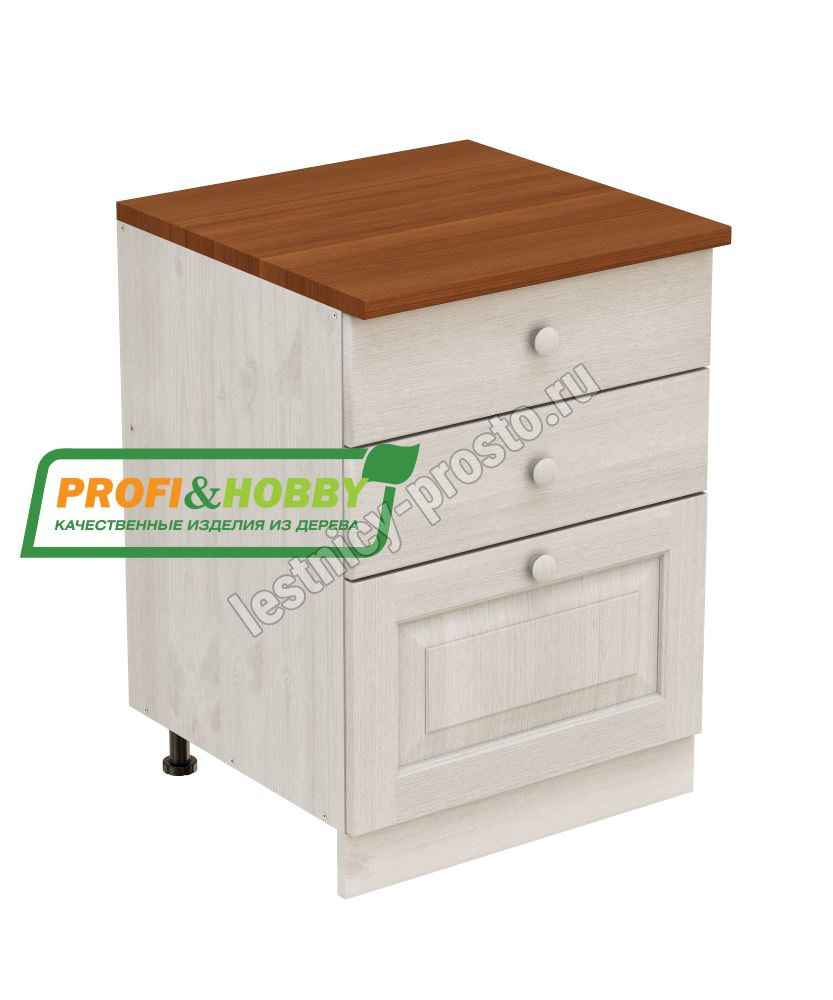 Тумба 3 ящика 600 х 560 х 720 сосна, без покраски