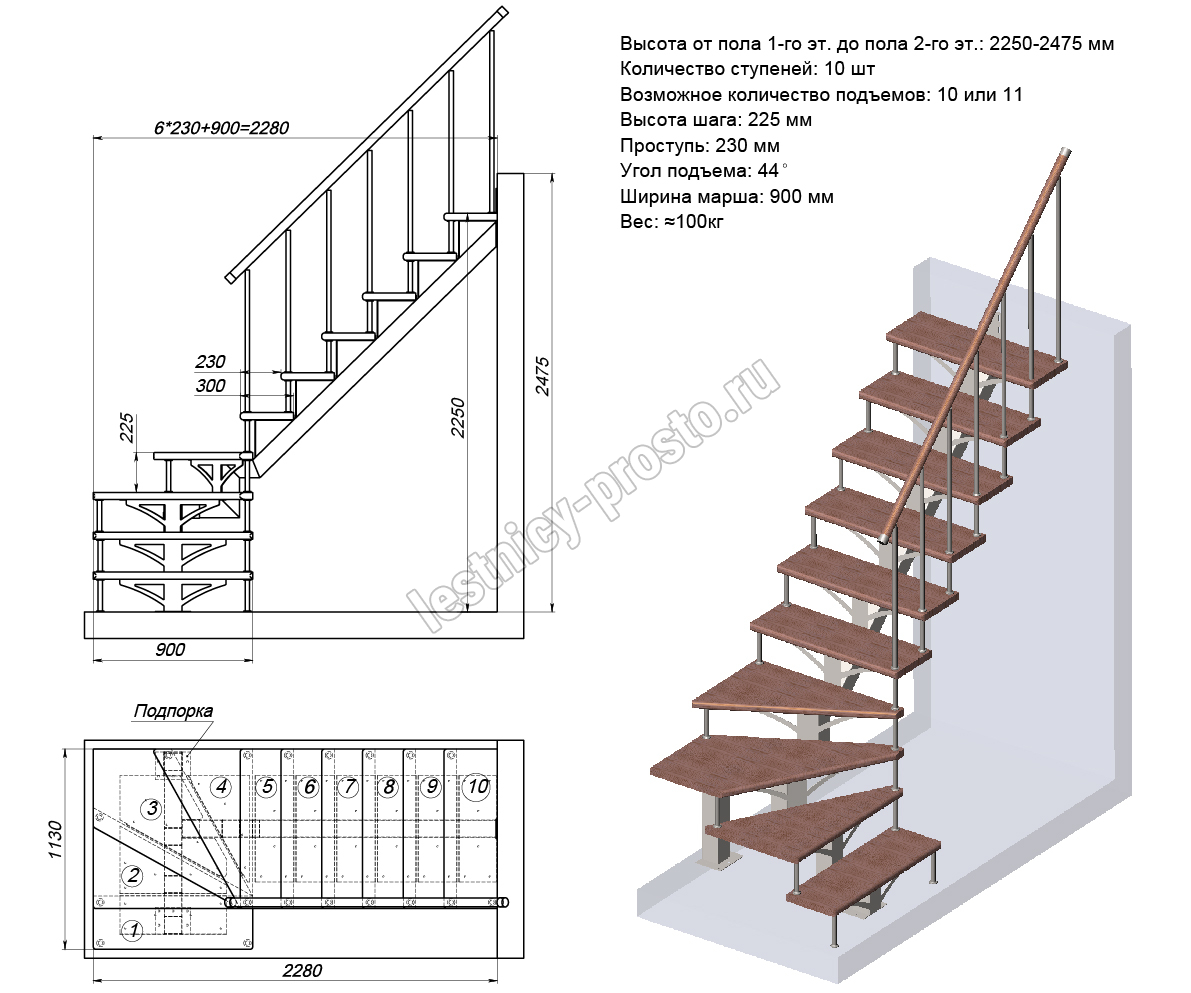 - таким образом вы получаете возможность увеличить общую высоту подъёма лестницы до необходимой.