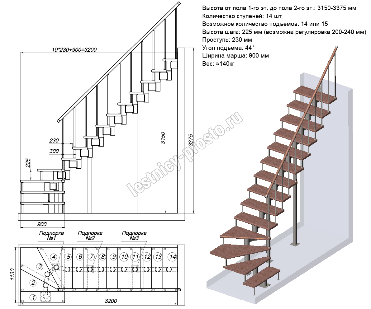 Стоимость указана для комплекта из модульного каркаса и деревянных ступеней без покрытия (ограждение можно выбрать отдельно)