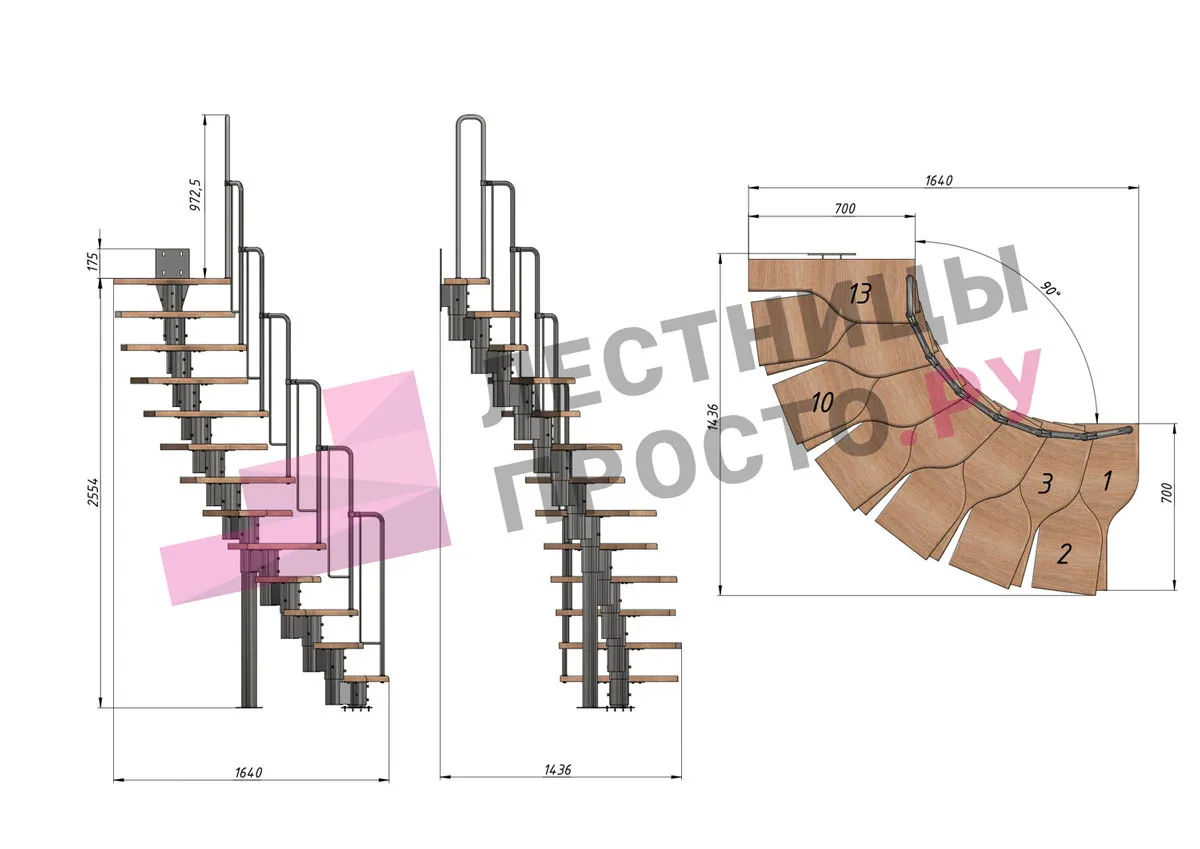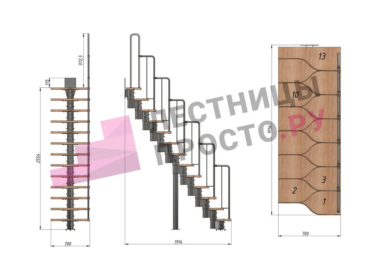 У лестницы  16 вариантов размера