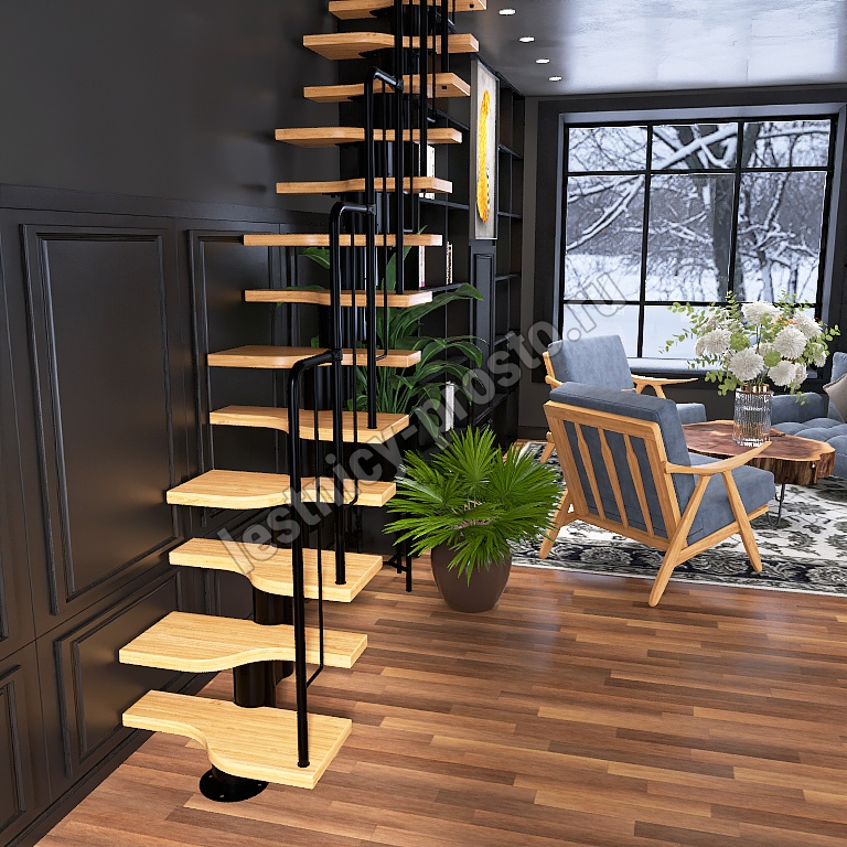 Лестница Prosto Urban Black гусиный шаг 600 мм/Ступени из срощенного дуба