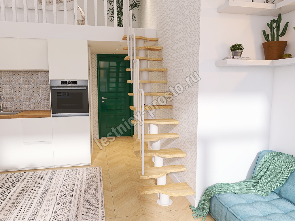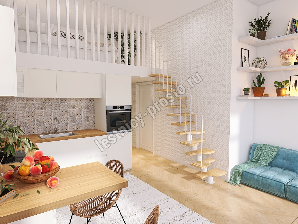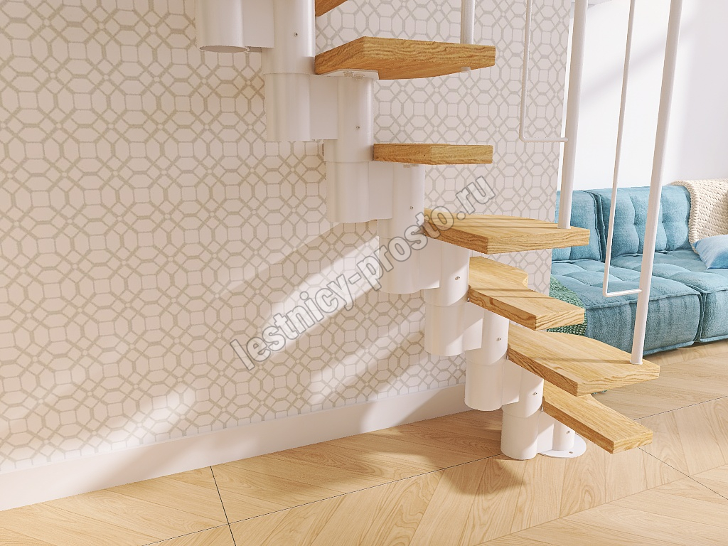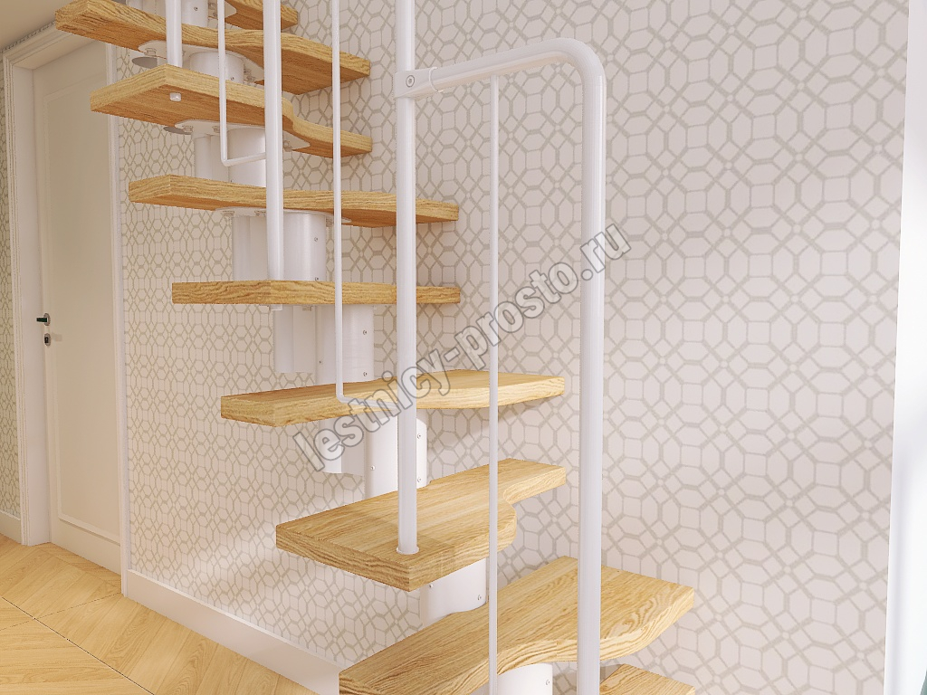 Лестница Prosto Urban White гусиный шаг 600 мм, h216-312 см (12 ступеней), бук