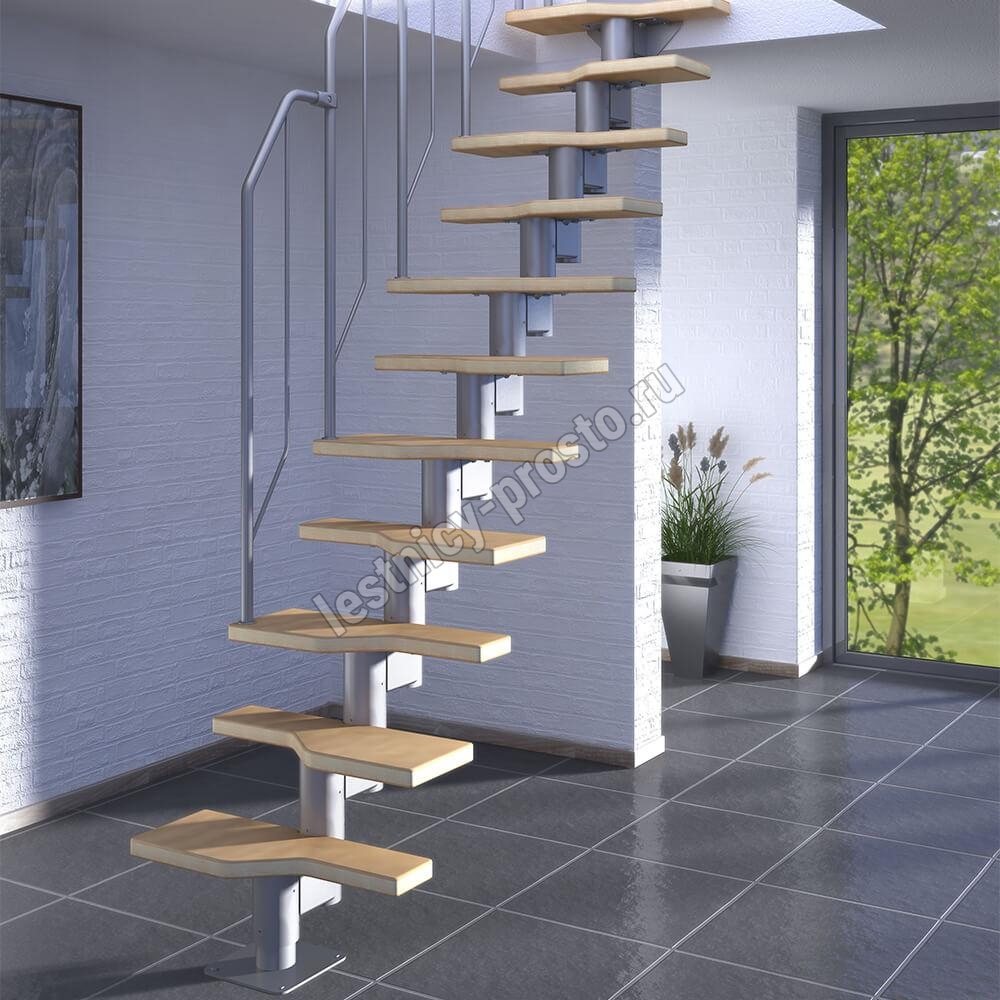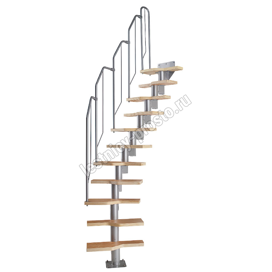 Модульность конструкции позволяет регулировать высоту лестницы при сборке и собрать необходимый поворот до 90 градусов. Ограждение устанавливается на любую сторону.