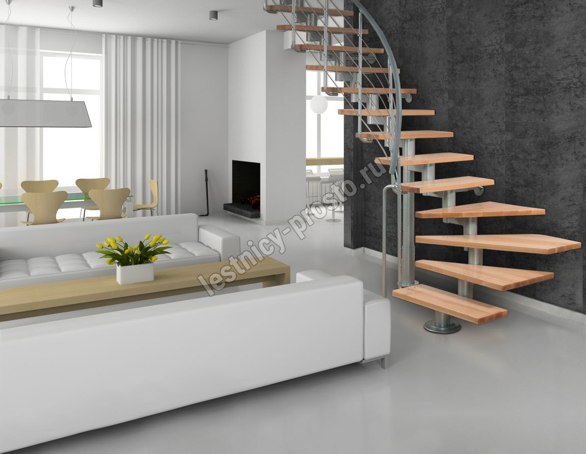 Модульная лестница DIXI PLUS серебро, светлый бук |