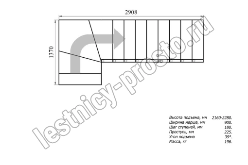 Высота лестницы 2160 - 2280 мм