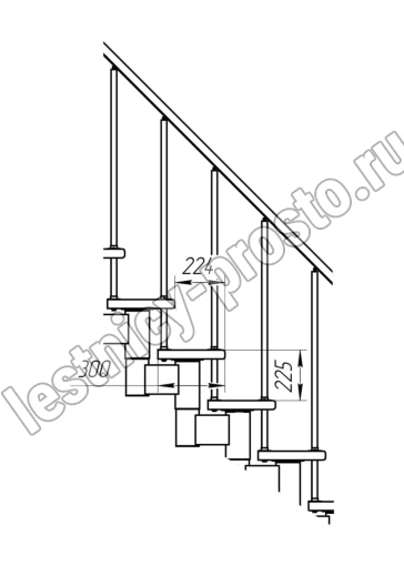 Модульная лестница Фаворит 225 2475-2585, Черный, Лиственница, Нержавеющая сталь