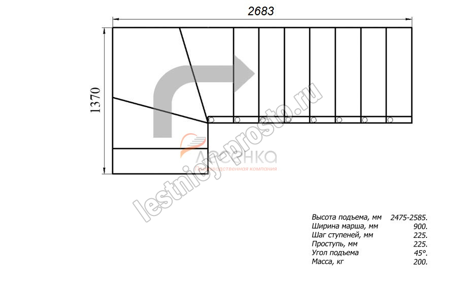 Модульная лестница Фаворит 225 2475-2585, Серый, Лиственница, Нержавеющая сталь