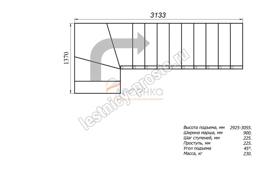 Модульная лестница Фаворит 225 2925-3055, Белый, Бук, Нержавеющая сталь