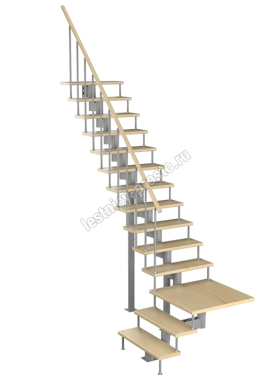 Модульная лестница Статус 225 3150-3290, Серый, Сосна, Нержавеющая сталь