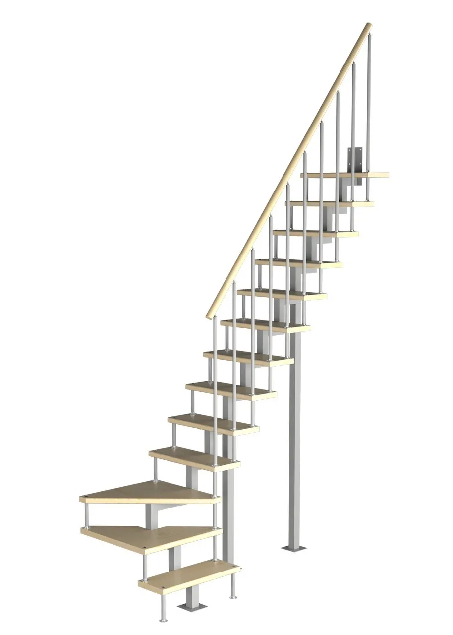 Модульная малогабаритная лестница Компакт 2925-3150, Серый, Сосна, Нержавеющая сталь