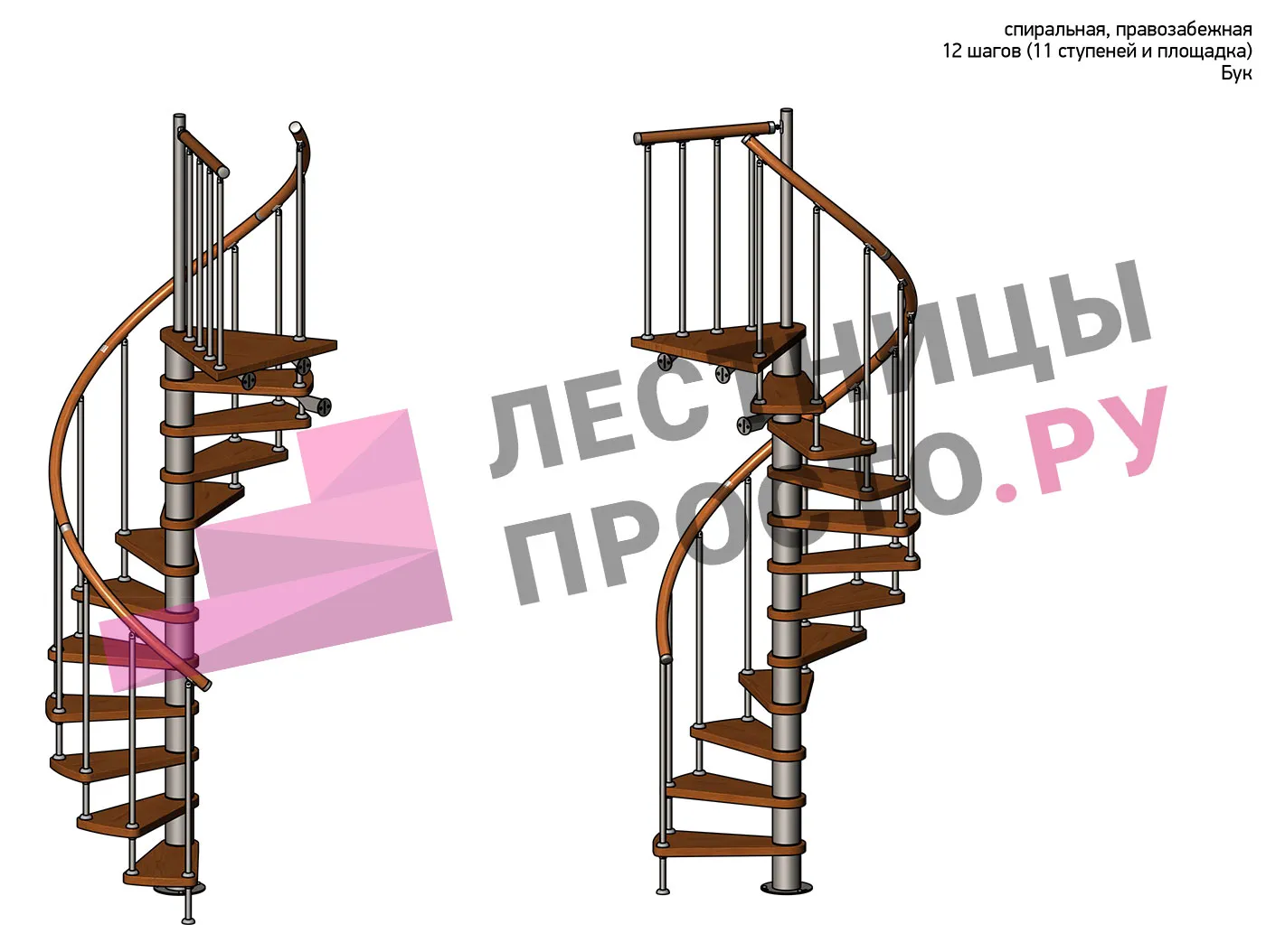 Винтовая лестница Prosto Spiral Black D120см, h260.5-304.6 см, бук