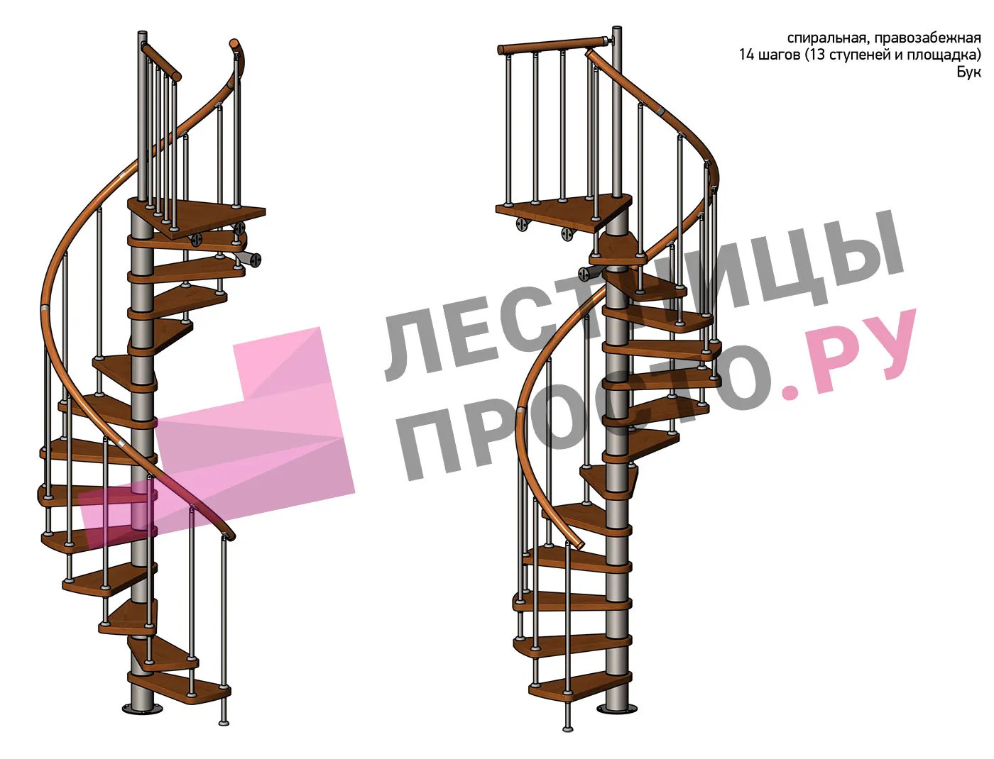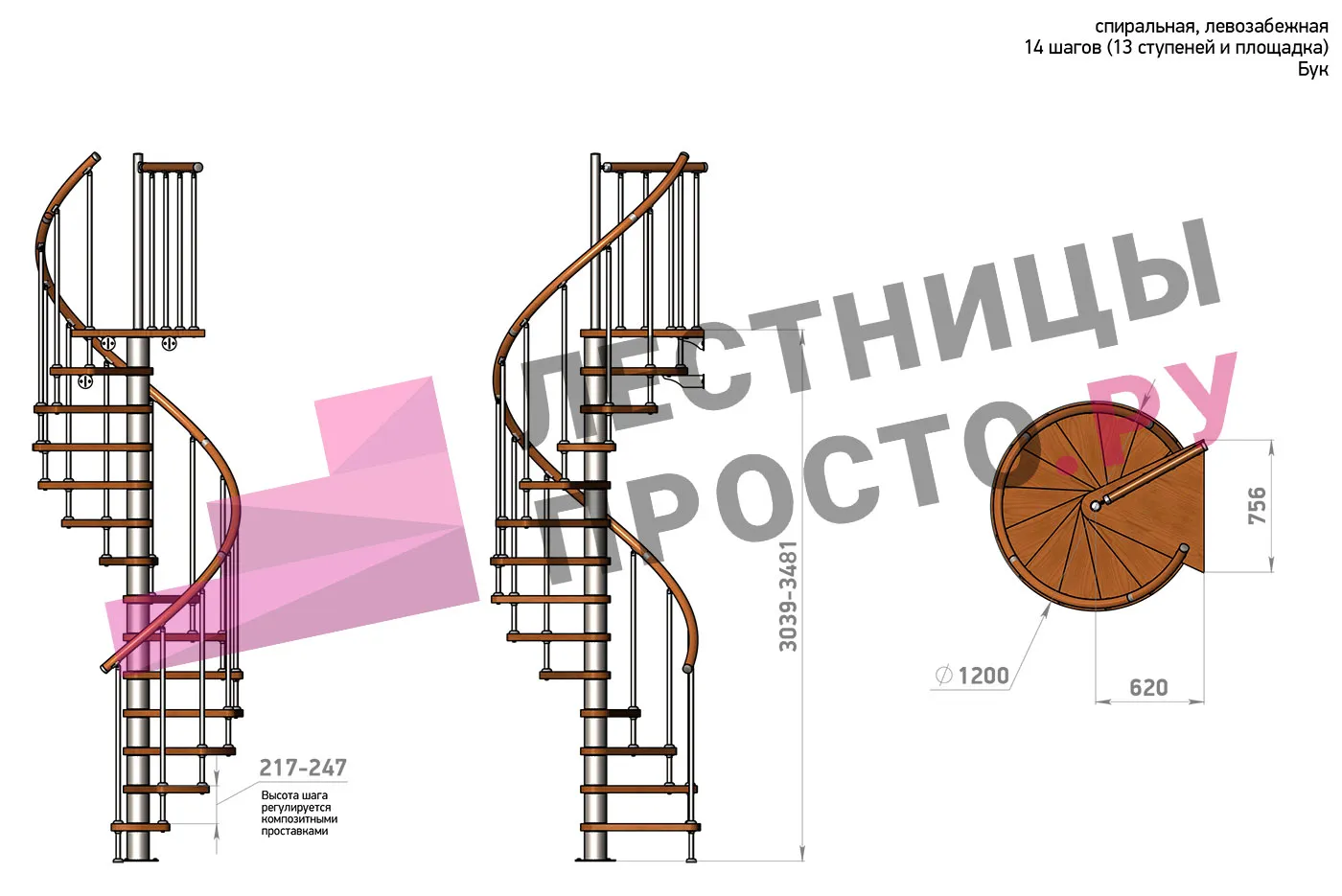 Винтовая лестница Prosto Spiral Black D120см, h303.9-348,1 см, бук