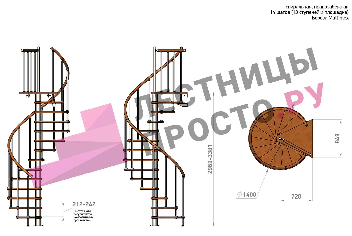 Высота лестницы 3182 - 3623 (14 ступеней) мм