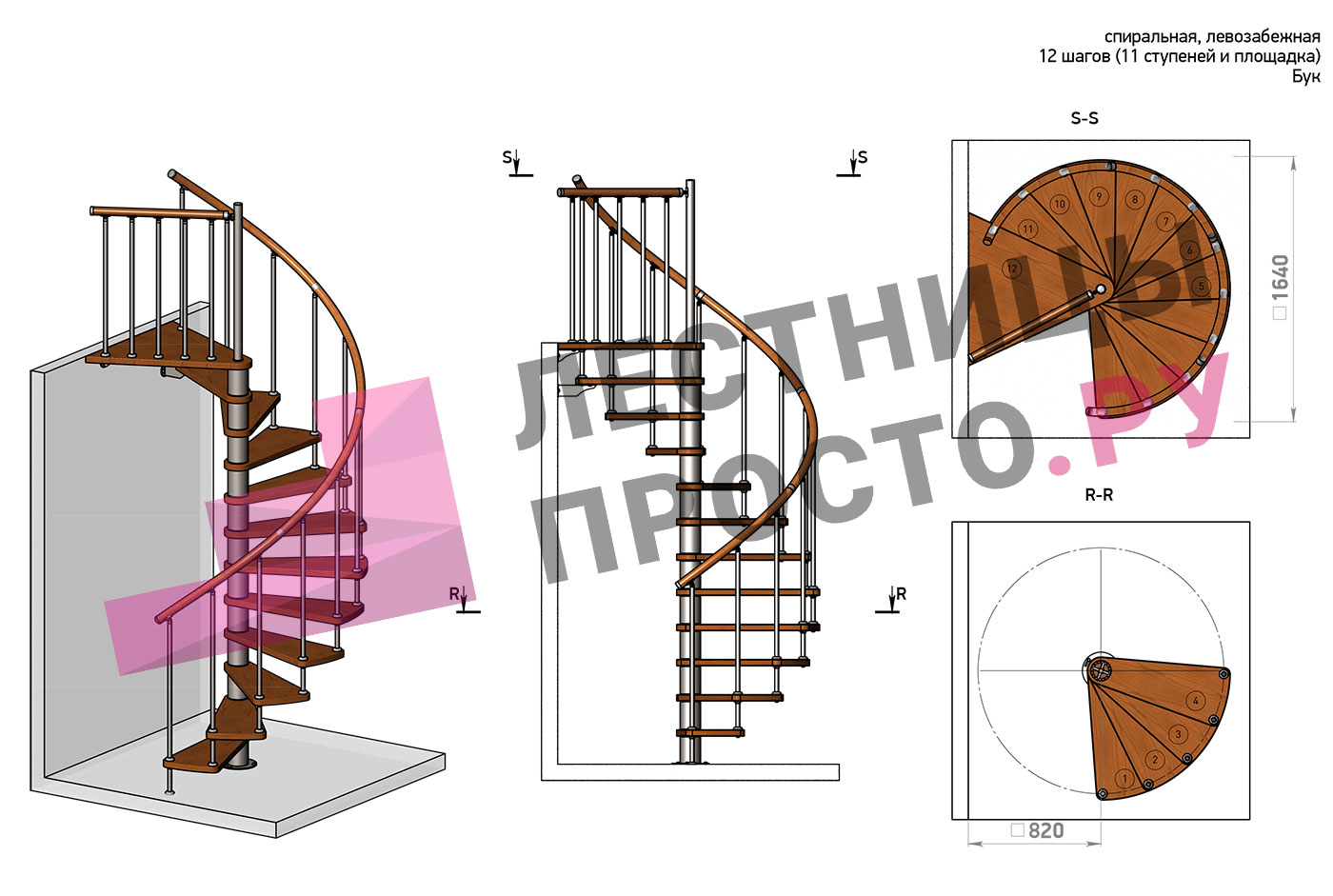 Правая, d=160см, 12 ступеней + площадка