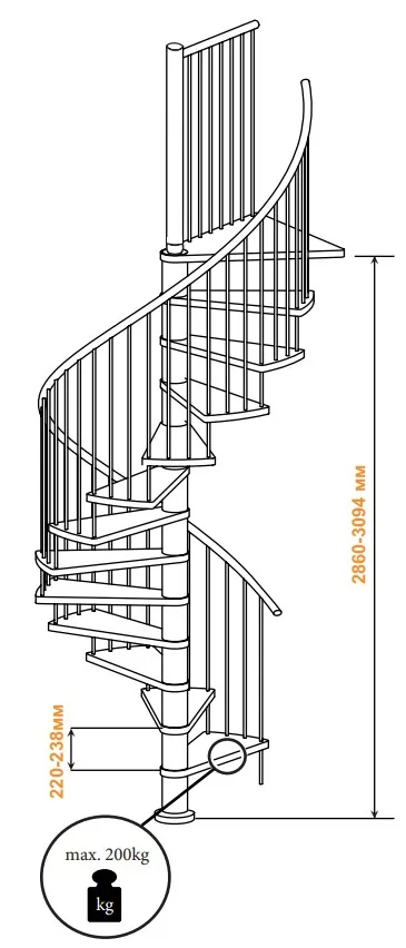 Высота шага регулируется при сборке с помощью специальных пластиковых вставок, что позволяет получить лестницу необходимой высоты.