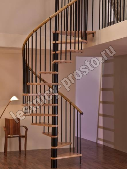 Винтовая лестница SPIRAL WOOD d140 см, чёрная, лакированный бук