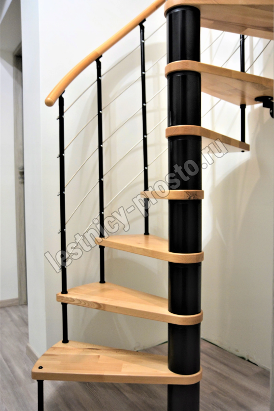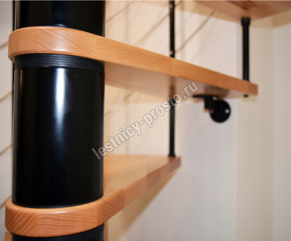 Cтупени и поручень изготовлены из массива бука и покрыты специальным лаком от компании Минка, который предотвращает царапины, сколы или стирание поверхности при интенсивном использовании лестницы.