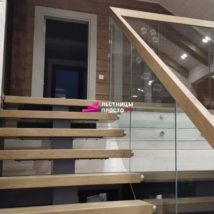Лестница по индивидуальному проекту со стеклянным ограждением LP-2935